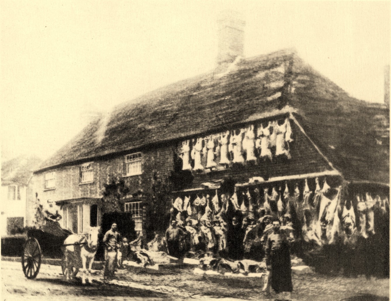Maurice Towse September 8, 2024 1337 × 1029 Maurice Towse Former house and butcher’s shop in Church Street, Storrington which belonged to William Linfield during the early part of the 19th century. Shows butcher Maurice Towse with his Christmas display of meat, c1870s